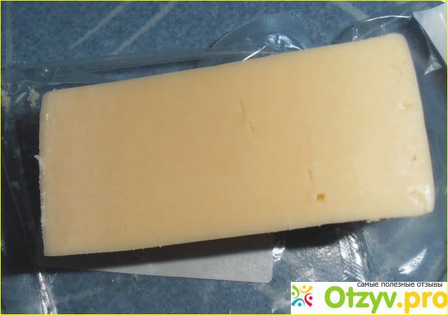 Выглядит этот сыр внешне обычно. Сыр как сыр, квадратной формы кусочек, запаян в ваккумную упаковку из тонкого пластика. На этикетке написано название и марка сыра, никакого особенного дизайна здесь нет, так как продукт, сами понимаете, бюджетный.