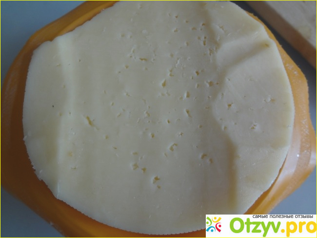 Открываем. Пористый по составу, маслянистый. Местами походит на брынзу, кисломолочный вкус.