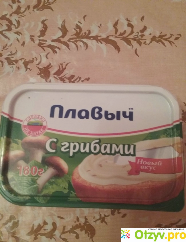 Сыр плавленный с грибами ТМ "Плавыч" я купила в семейном гипермаркете "Магнит" в г. Новосибирске, когда в начале августа 2015 года собиралась обратно ехать домой. Сыр вместе с другими продуктами питания я купила на дорогу, а ехать домой поездом мне 2 суток. Сыр в очень яркой и красивой коробочке с крышкой, на которой указано название сыра, количество 180 грамм, сделано на Алтае, "Новый вкус". Стоимость плавленного сыра 49 рублей 90 копеек.