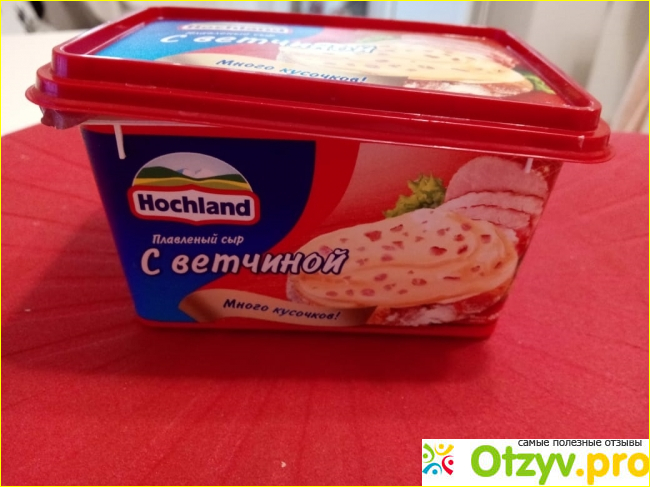 Большое количество кусочков ветчины добавленной в нежный плавленый сыр придают ему особый вкус.