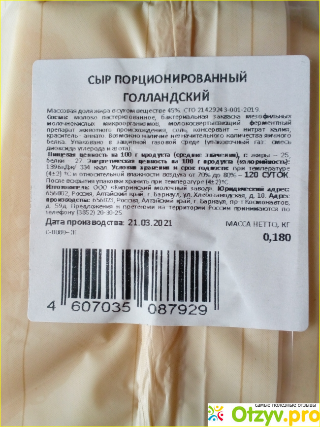 Состав сыра устроил меня вполне (изготовлен он на основе молока пастеризованного), без растительных жиров. Полный состав продукта можно посмотреть ниже на фотографии: