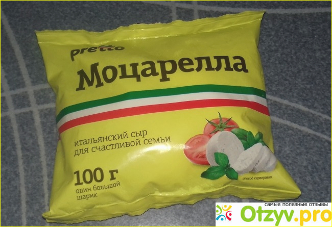 Увы, и с таким пришлось столкнуться. Купила как-то на праздничный стол сыр "Моцарелла", от марки Pretto. Хотела что-нибудь эдакое сделать, например салат, никогда раньше не делала салаты с "Моцареллой", так всегда этот сыр съедался. А тут прям захотелось салата с помидорами и огурцами, и сыр туда же кубиками порезать. Ну и купила сыр по акции, чтобы не больно дорого вышло, поэтому выбор пал именно на сыр "Моцарелла" от Pretto.