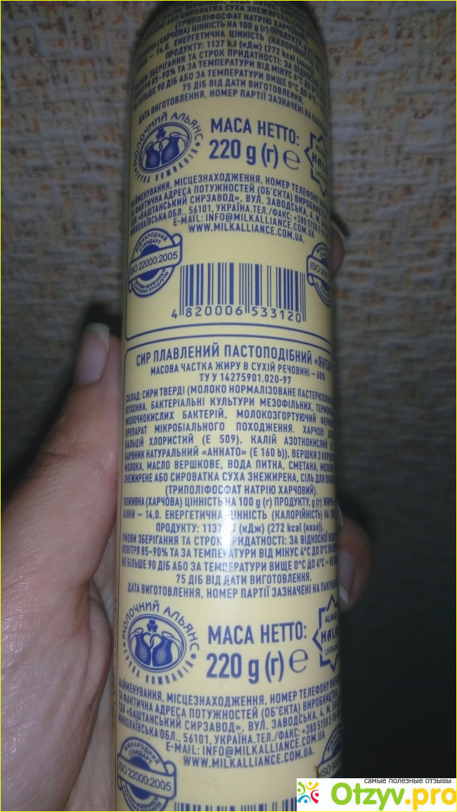 На упаковке можно найти всю необходимую информацию о производителе, составе, сроке и условиях хранения сыра.