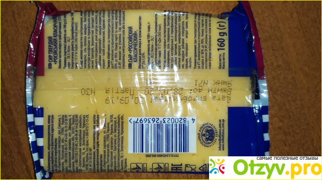 Сыр имеет красивый желтоватым цвет, это благодаря экстракту аннато. Сыр вкусненький, нежный, хорошо плавится в духовке. В расплавленном виде сыр тягучий, ароматный и очень вкусный. Сыр хорошо режется, он не сухой. Жирность сыра 50%.