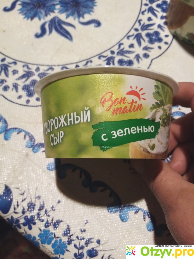 Решили взять по акции в магазине творожный сыр с зеленью, хотя бы потому, что своя зелень еще не выросла, а с сушеной получается не так вкусно. Что могу сказать - сыр по консистенции очень плотный, на жидкий, как бывают некоторые.