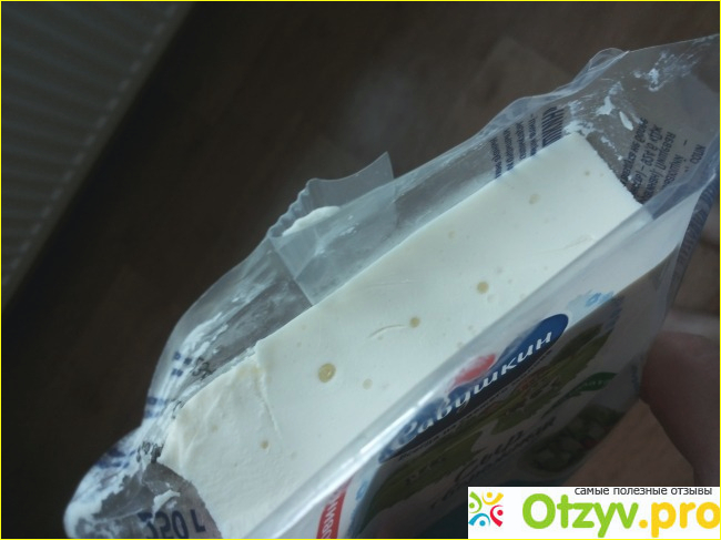 Творожная масса однородная по консистенции, плотная, белого цвета. На вкус – это просто чудо: мягкая, нежная, просто тает во рту. Она немного соленая, но присутствует и сладость и массовая доля жира шестьдесят процентов. Я съела пол упаковки, но пить не хотелось после этого. Так же она легко режется ножом.