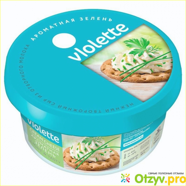 Хочу поделиться своим отзывом о Сыре творожном с зеленью Violette. Этот сыр (марки Виолетта) продается с разными вкусами (отличается цветом баночек), но мне больше всего нравится именно этот вид по нескольким причинам.
