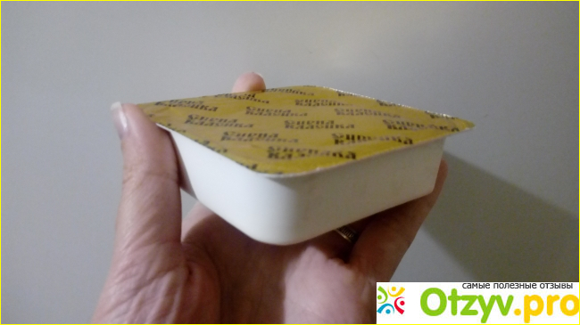 Под картонной упаковкой находится пластиковая коробочка непосредственно с сырком. Коробочка надёжно запаяна фольгой, все герметично и во внутрь упаковки точно не пропадут микробы.