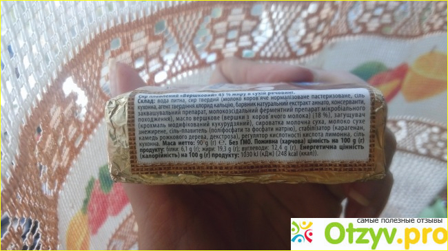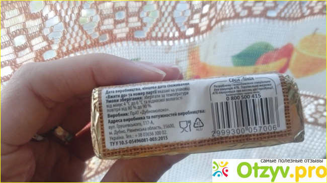 Сырок плавленый от собственной торговой марки супермаркета АТБ Своя линия Сливочный 45% я купила впервые, так как его стоимость приемлемая и состав мне показался неплохим.