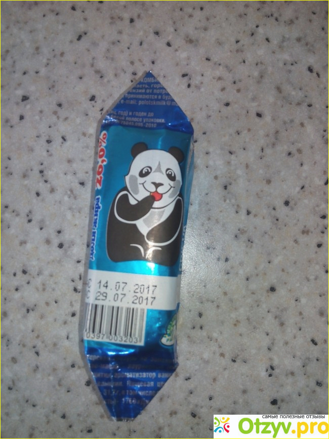 Я хочу Вам порекомендовать качественный Сырок творожный глазированный. Этот сырок выпускает Полоцкий молочный комбинат, белорусское предприятие. На этикетке синего цвета изображен медведь панда. Масса сырка 50 грамм. Массовая доля жира 26%.