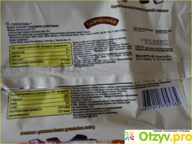 В ней 6 творожных палочек по 30 грамм каждая в индивидуальной упаковке. Цена была менее ста рублей в обыкновенном продуктовом магазине.
