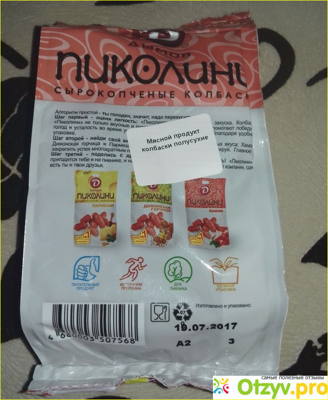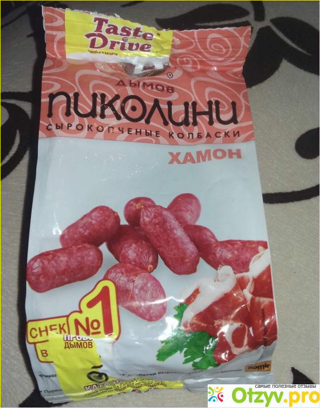 Помимо сырокопченых колбасок со вкусом хамона, марка Дымов выпускает "Пиколини" еще и со вкусом помидоров, со вкусом бекона и со вкусом сыра. Я еще все не перепробовала, но вот с помидором вкусные довольно-таки и со вкусом хамона тоже вкусные, мне понравились.