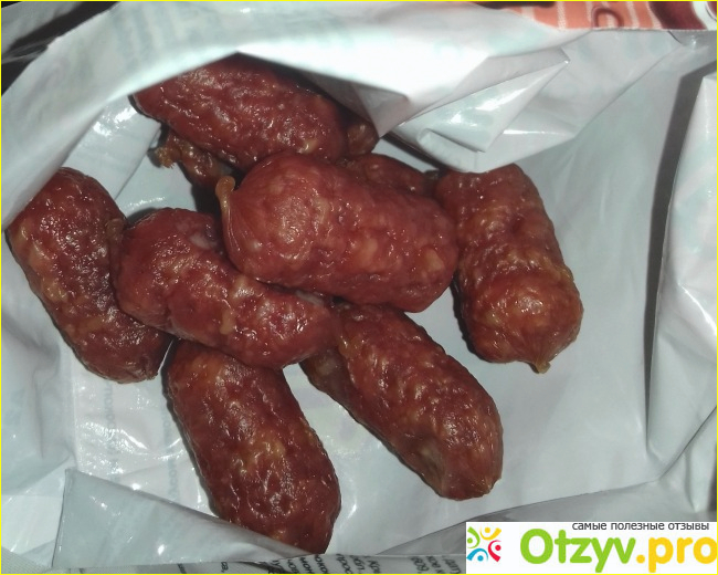 И у данных колбасок тоже хороший вкус нормальной сырокопченой колбасы. Данные колбаски не очень жирные, не слишком соленые и их можно пожевать, что как раз хорошо к пиву. Я рекомендую.