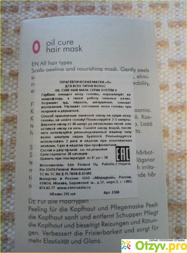 По совету девушки, проводившей процедуру распознания качества моих волос, я пробрела маленький набор комплекса против выпадения System 4 объемом 100мл. В состав набора входит: очищающая маска «О» (которая должна была помочь избавиться от сальных пробок на моей голове), биоботанический шампунь и биоботаническая сыворотка стимулирующая кровообращение кожи головы. Подробный состав и описание этих средств можно прочесть на приложенных к отзыву фото и конечно же на сайтах магазинов где продается данная косметика. А я хочу поделиться своим опытом, а главное результатом от использования System 4.