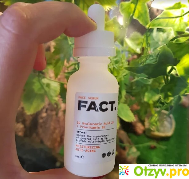 Хочу поделиться впечатлениями о сыворотке для лица с гиалуроновой кислотой и витамином В5 от FACT, которая замечательно и на целый день увлажняет мою кожу. Купила на сайте магазина OZON, можно заказать и на WILDBERRIES.