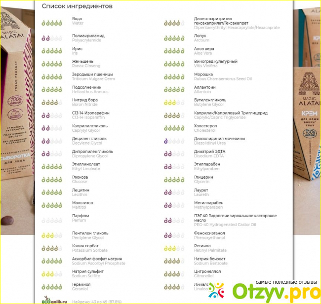 Содержит так же гиалурон, эластан и коллаген. Всем известны свойства перечисленных компонентов, благотворно действующих на увядающую кожу лица, как женского, так и мужского.