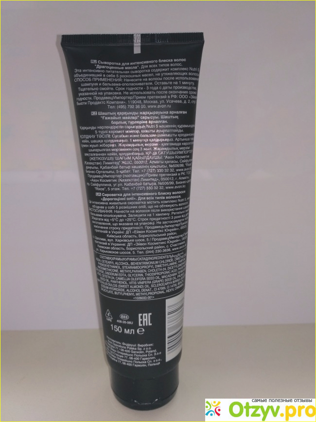 В последнем каталоге было интересное предложение выбрать их предложенных продуктов три и заплатить за них по 100 рублей. Я выбрала шампунь для блеска волос, «шоколадный» скраб для тела и эту сыворотку. Из всех выбранных мною продуктов этот самый дорогой.