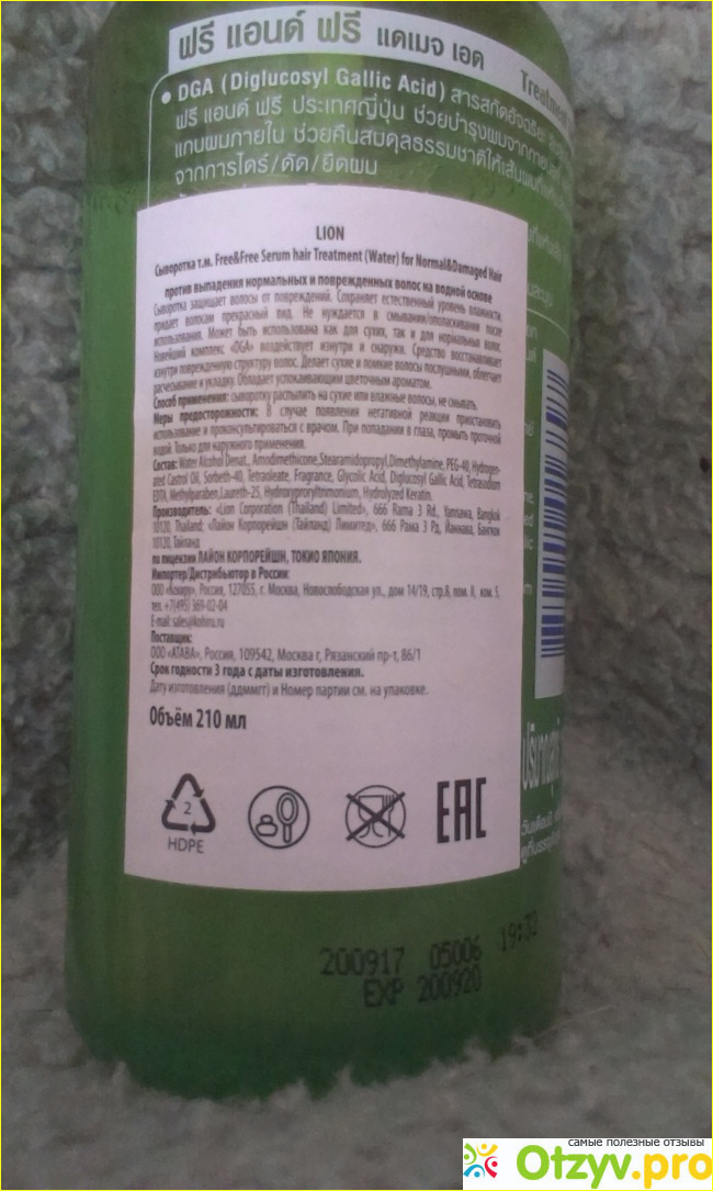 Хочу вам сегодня представить ухаживающую сыворотку для волос Lion. Несмывашка подходит для нормальных и поврежденных волос. Зелёная бутыль с распылителем , объём 210 мл.