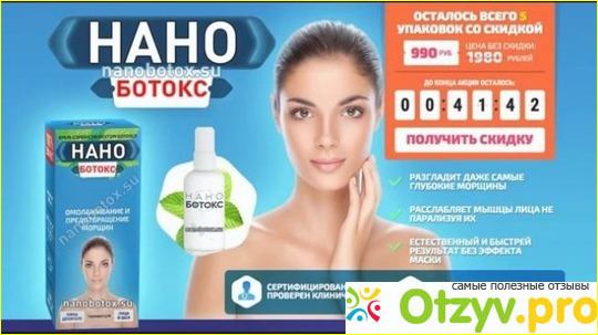 Nano ботокс это эмульсия, которая предназначена специально для того, чтобы избавить человеческую кожу от мимических морщин. Нано-ботокс способен сохранить молодость кожи надолго, он действует мягко и безопасно благодаря своему составу, а также он бережно относится к коже и насыщает влагой, то есть хорошо увлажняет.