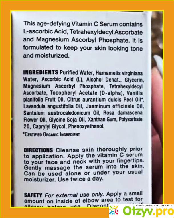 Витамин С относится к небольшому числу ухаживающих косметических ингридиентов польза которых доказана в ходе научных лабораторных исследований. Эффект можно увидеть своими глазами, особенно на возрастной коже лица, обладательницей которой я являюсь.