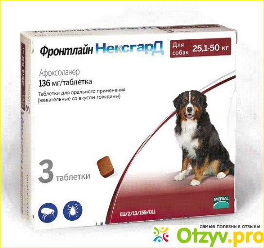 Вообщем Нексгард, можно принимать собаке вместе с едой или без еды, сама таблетка очень вкусная для собаки, со вкусом говяжий бульон, но не содержит белков животного происхождения, что не вызывает аллергию. Достаточно давать одну таблетку в месяц, чтобы быть спокойной за здоровье питомца. Через пол часа препарат начинает действовать. Практичен тем, что не надо прятать собаку от ребенка, как мы это делали, когда использовали капли. Абсолютно безопасно для окружающих!