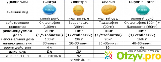 1. Виагра - назначают для разового применения, обладает отличным эффектом, при этом эрекция будет очень мощной и будет продолжаться на протяжении четырех часов. Ориентировочная цена 1000-1500 рублей за одну таблетку. Рекомендуемая доза по активному веществу должна составлять 50 мг. Принимать таблетку нужно непосредственно за 2-3 часа до начала полового акта. У виагры достаточное количество побочных эффектов, а также противопоказаний. И назначать средство должен вам лишь лечащий врач-уролог.