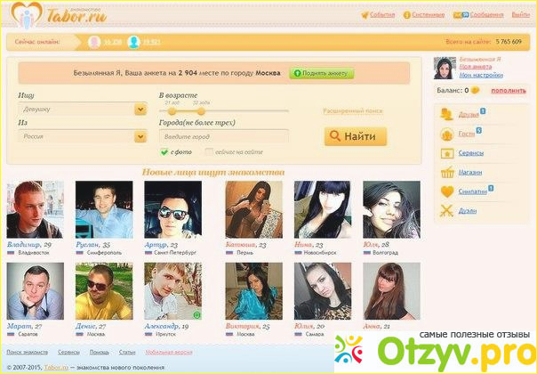 Табор. ру это сайт знакомств где собрано все и сразу. Здесь можно найти все , что душе вашей угодно. И просто общение , как между мужчиной и женщиной , так и общение между женщинами. Можно найти хороших людей с которыми можно построить хорошие взаимоотношения и встречаться время от времени в качестве хороших друзей или в качестве любовников. Да , вы не ослышались , именно любовников, и в этом нет ничего зазорного. Все мы люди и как говорится, что естественно то не безобразно.