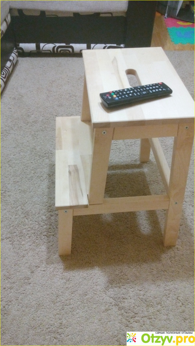 Стул-лестница Бегвэм от Икеа отличный помощник в хозяйстве. Он может быть использован как лестница, например, чтобы достать что-то с верхних полок, повесить шторы, поменять лампочку, стряхнуть пыль, имеет две ступеньки: нижняя поуже, верхняя широкая, с отверстием для удобства транспортировки . Если в семье маленький ребёнок, стульчик пригодится как подставка в ванной для самостоятельного умывания, и даже как маленький столик-парта (для деток 1,5-2 лет).