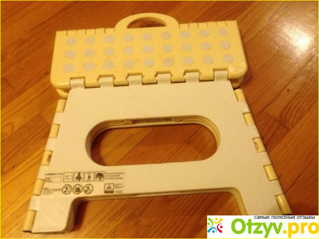 Кроме того, мне всегда нужен упор для ног, что бы сидеть было удобнее. Вспоминая старые деревянные табуреты, хотела заказать такой мастеру. К счастью обнаружила более усовершенствованную модель маленького складного табурета.