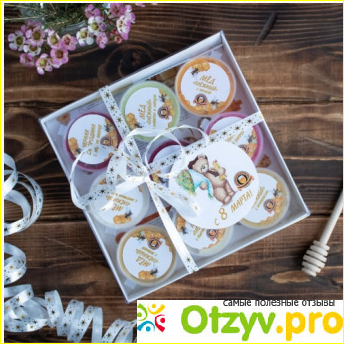 В наборе 9-ть сортов меда в баночках по 70 грамм. Что порадовало, так это, что мед идет с ягодами и орехами - такие медомиксы. Вкус хороший, каждый вид открывает новую палитру вкуса и запаха. По упаковке тоже все нормально, нигде ничего не повреждено и все аккуратно уложено. Самое главное, что мед натуральный и мои народные тесты не выявили фальсификата. В общем на подарок или просто для себя как десерт или для повышения иммунитета в самый раз.