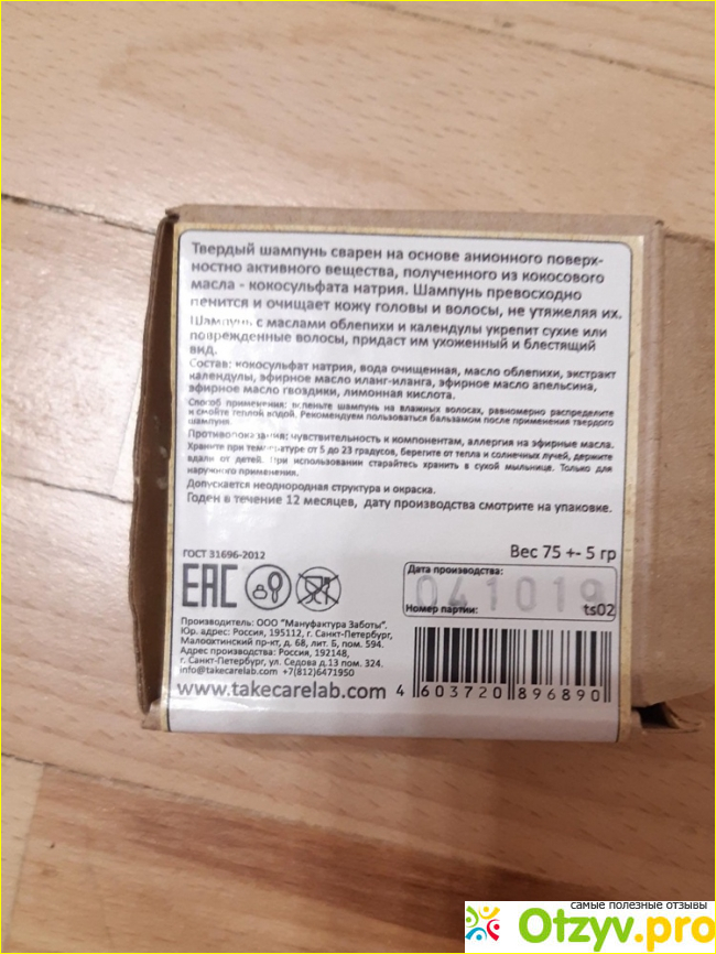 Твердый шампунь "Облепиха и календула" от TakeCareStudio я приобретала за 330 рублей за 75 граммов. Предназначен для пересушенных волос, секущихся и поврежденных. Производитель обещает питание, восстановление и очищение. В составе масла: гвоздики, апельсина, иланг-иланга, масляный экстракт облепихи, вода, лимонная кислота, натрия коко-сульфат. Благодаря натуральным ингредиентам волосы приобретают блеск, силу, кожа очень хорошо очищается и сохраняет свежесть гораздо дольше.