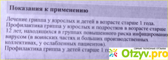 Кроме того, что он показан для лечения, его ещё можно использовать и с целью профилактики против развития гриппа, в тот период, когда появляется эпидемия и повышается риск развития осложнений.