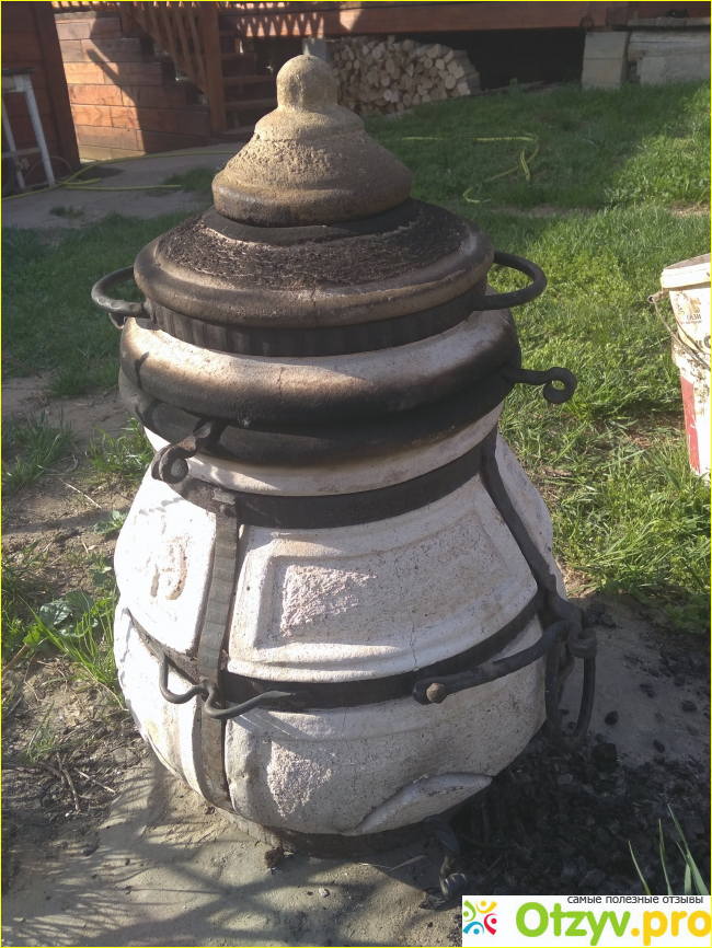 К месту не привязан. Удобен в разжигании – дрова закладываем через верх в печь и поджигаем. Внизу тандыра находится поддувало, его нужно открыть. Заостряем внимание – огонь горит непосредственно в кувшине, пламя достигает полуметра, располагайте печь дальше от деревянных построек..
