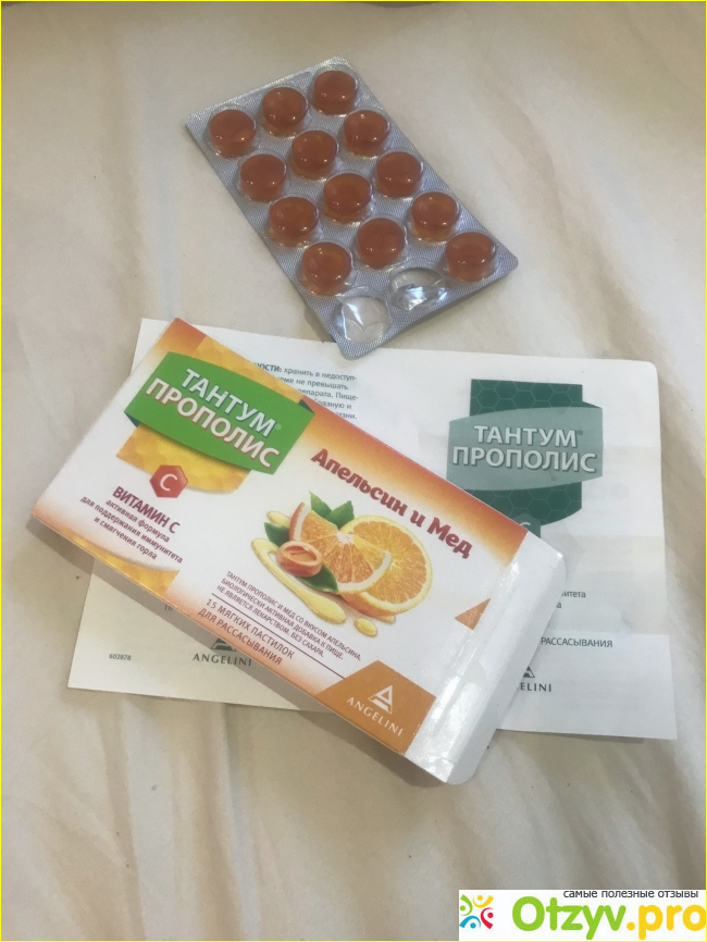Мой выбор пал на рассасывающие пастилки Тантум Прополис.