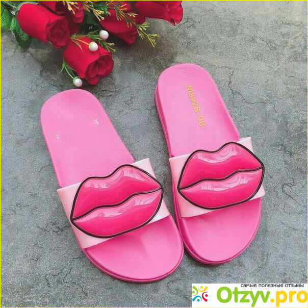 Вот очередной товар, которой удалось сегодня там приобрести, так это тапки с поцелуем. Такое название дала, потому что они розового цвета, а на центре красуются алые губы.