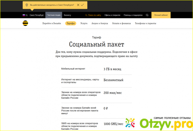 Тариф Билайн "Социальный пакет" |