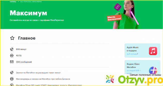 Есть еще Мегафон-ТВ, Амедиатека, но эти услуги подключаются акционно, они не навсегда. В целом неплохой тариф для тех, кто много тратит услуг мобильной связи.