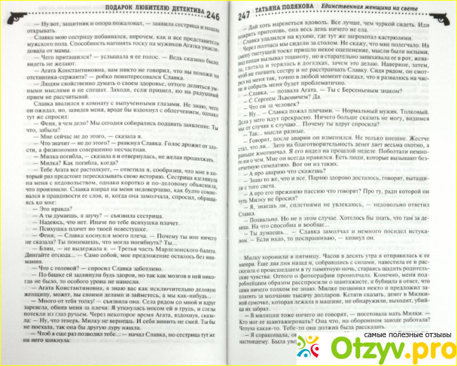 Полякова словом умело передает атмосферу, которая либо вызывает дрожь, либо радость, а порой выступают слезы на глазах. К примеру, меня не оставила равнодушной ситуация на берегу моря, когда Фенька обнаружила труп подруги. Читать было очень интересно, захватывающе, сердце неоднократно замирало от волнений и переживаний. Сюжет полностью подтвердил жанр - авантюрный детектив.
