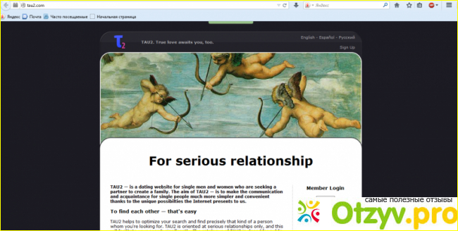 В статье речь пойдет об одной сайте знакомств, который пользуется действительно хорошей репутацией в России. Многие о нем конечно не знают. Но если люди, которые ведут активную переписку на этом ресурсе и довольный возможностями, который он предоставляет. Называется сайт Tau2.com.