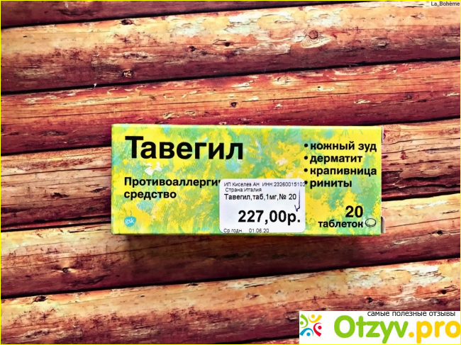 Стоимость: Тавегил таблетки по 1мг №20: от 220 рублей.