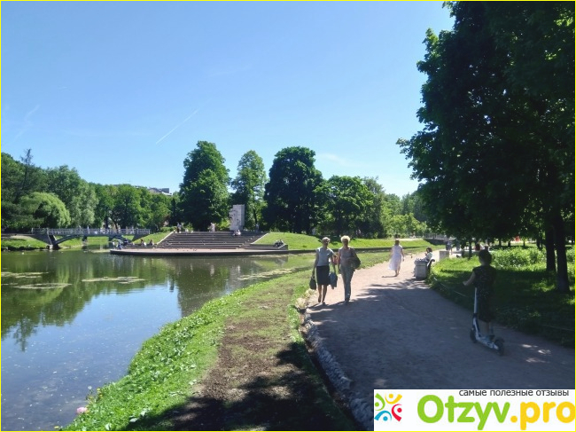 Вдоль больших водоемов стоят скамейки. На них очень приятно отдыхать, особенно в жаркую погоду, ведь от водоема веет прохладой. Вообще в саду какая-то особая атмосфера.