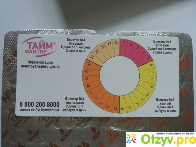 Тайм фактор является комбинированным препаратам, который применяется для нормализации менструального цикла, и рассчитан так, что отдельные составляющие его принимаются в разные периоды цикла. Кроме того данное средство способствуют поднятию общего настроения, улучшению самочувствия, а также смягчению симптоматики предменструального синдрома. Данный препарат разбит на 4 блистера, которые принимаются в разное время цикла.