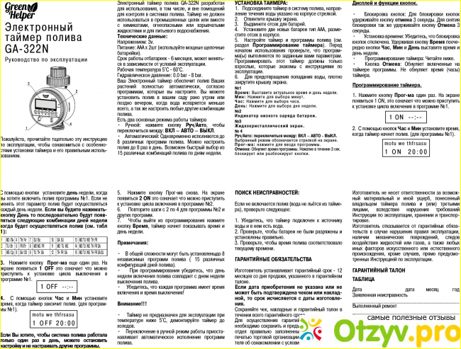 Вам с таким таймером не нужно париться ни о заряде батареи, ни о поливе. Главное, позаботьтесь о том, чтобы емкость, откуда будет выкачиваться вода, была полной! А то, закончится ли заряд батареи или нет, вас не должно беспокоить! Кроме того, таймер работает и качает, даже при нулевом давлении, то есть самотеком. Если у вас самотечная система полива, то в вашем случае таймер полива green helper ga 322n будет очень полезным и незаменимым.