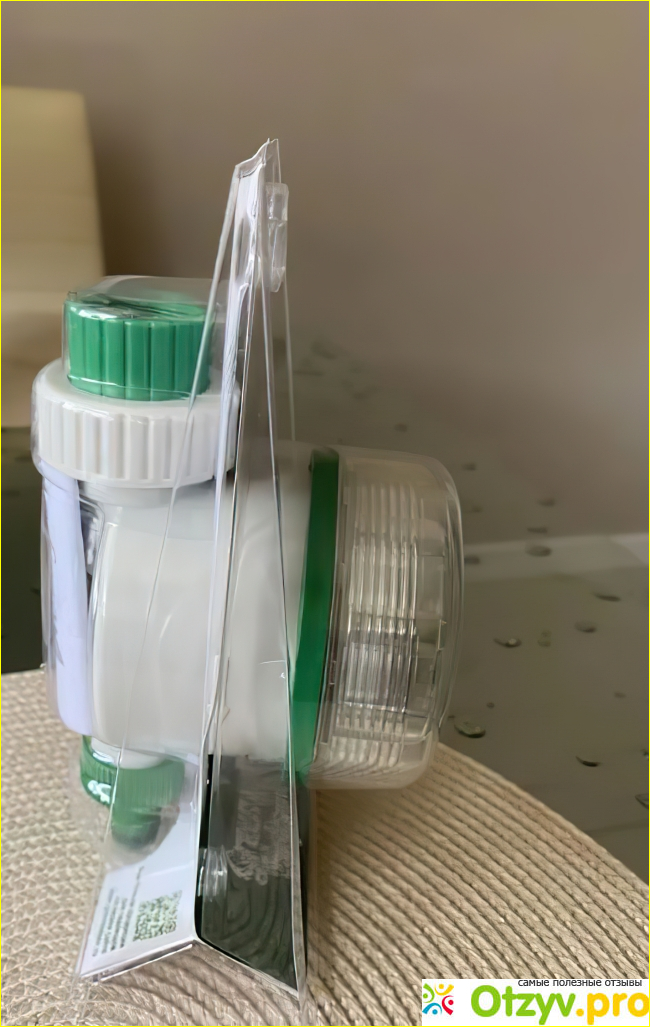 Привезли его довольно быстро. Выглядит он стандартно для подобных устройств. Разбирается устройство на несколько частей и состоит из отсека с аккумулятором и жидкокристаллическим дисплеем, переходника от крана к контролеру, соединительной гайки, клавиш управления под дисплеем, крышки и присоединения к шлангу.
