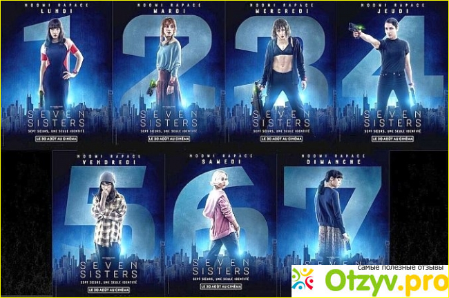 Коротко по сюжету. Будущее. В целях сохранения земных ресурсов принят не очень оригинальный закон об одном ребенке на семью (остальных в криосон до лучших времен). А у героя Уилема Дефо родилось аж семь бабенок- во подфартило-то... Он назвал их по дням недели, теперь всю последующую жизнь каждая из них должна была выходить из квартиры только в свой строго определенный день, естественно, публичное имя у них было одно на всех, как и шрамы, родинки и т. п. Система не идельная, особенно когда все семь разные по характеру, привычкам и т. д. - индивидуальные особенности и Инет-то никто не отменял... Вот на сбое этой системы и строится основной замут кинокартины.