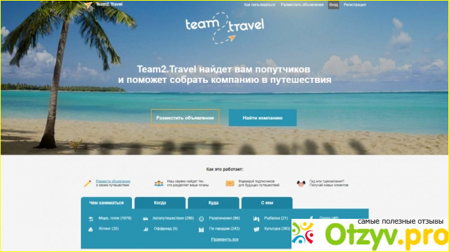 Чтобы найти компанию. Team2.Travel сайт для путешественников, чтобы отдохнуть и путешествовать. Найти множество попутчиков, чтобы поехать в отпуск, собрать группу или присоединиться к другим людям.
