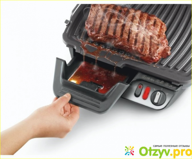 Еще очень удобно, что в гриле есть специальный лоток для сборки жира. Когда готовится мясо, то в процессе приготовления скапливается большое количество жира. И оно не впитывается обратно в блюдо, а стекает в специальный лоток. Таким образом готовая еда получается не только вкусной, но и полезной. Такой лоток легко достается из прибора и моется. Поэтому с этим проблем точно не возникнет.