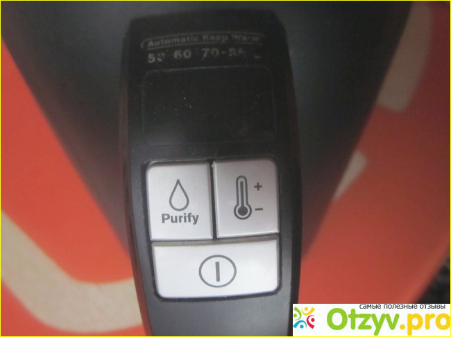 Терморегулятор. При нагреве на дисплее отображается температура воды, всего пять ступеней от 50 градусов до ста.