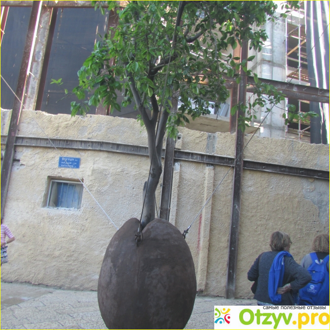 Одному творческому человеку пришло в голову посадить апельсиновое дерево в Яффо. Но не просто посадить в землю, да и трудно это сделать, когда улицы вымощены камнем. Дерево решено было подвесить на тросах, прикрепленных к большому глиняному горшку яйцевидной формы. Автор этой оригинальной идеи – скульптор Рене Морин. Это «парящее» дерево стало своеобразным символом Яффы.