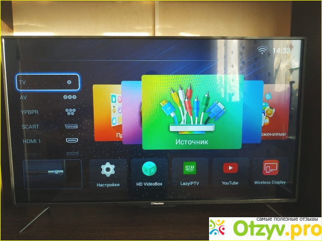 Стал вопрос о покупке телевизора в гостиную, у которого был бы, Smart TV и Wi-Fi Долго смотрели в интернете разные марки и отзывы. В конце концов, выбор пал на жидкокристаллический телевизор цветного изображения Hamber 49HRP6508. Телевизор покупался в магазине «НОРД» за 29 тысяч рублей.